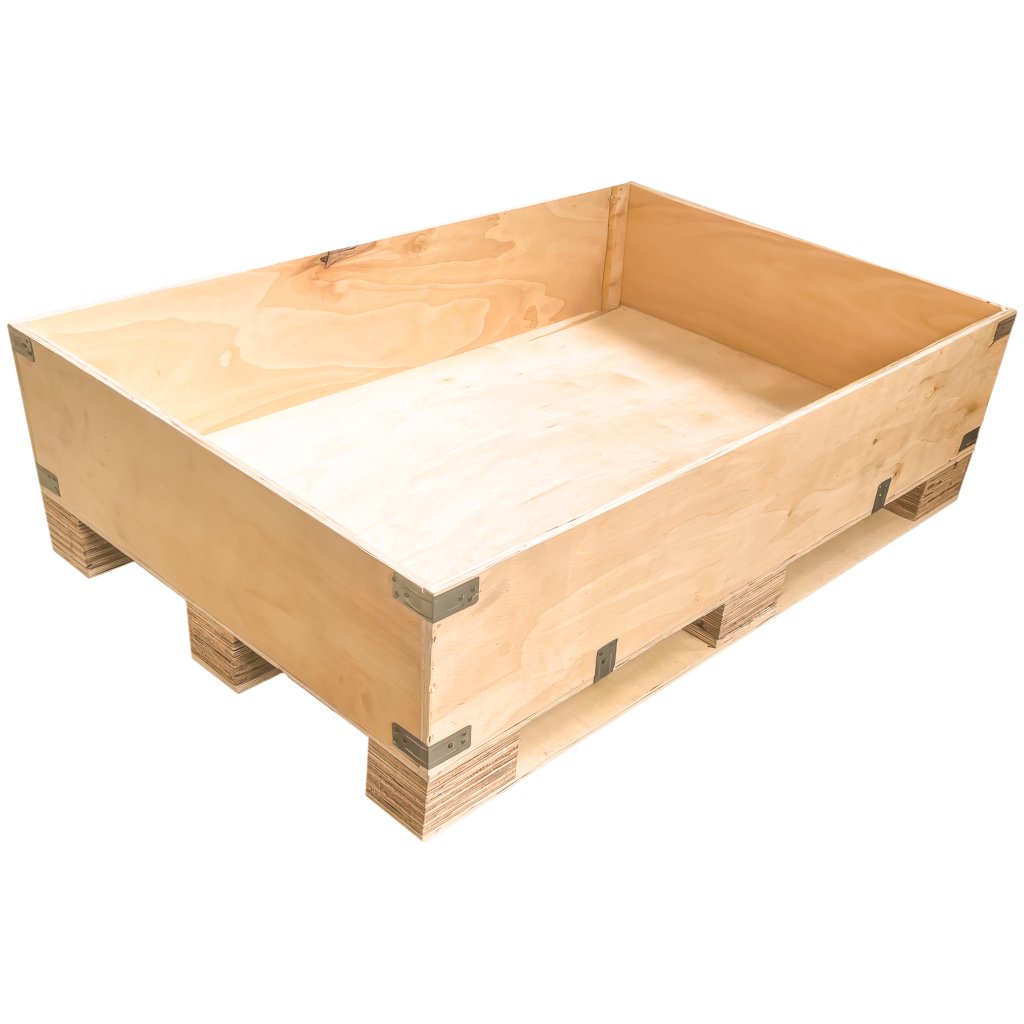 Odolná a praktická dřevěná bedna na paletu s víkem pro bezpečnou přepravu a skladování vašich produktů. Vyrobeno z pevného dřeva s paletovým dnem pro snadnou manipulaci.