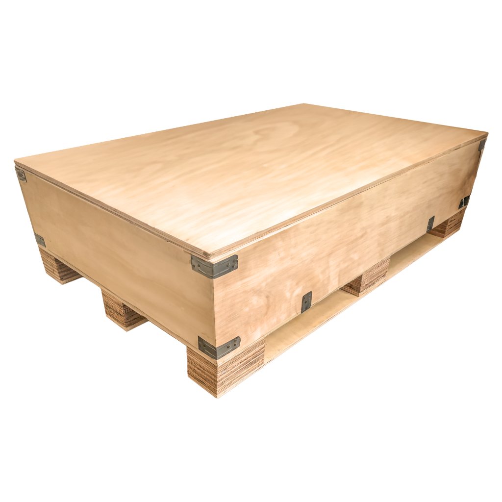 Odolná a praktická dřevěná bedna na paletu s víkem pro bezpečnou přepravu a skladování vašich produktů. Vyrobeno z pevného dřeva s paletovým dnem pro snadnou manipulaci.