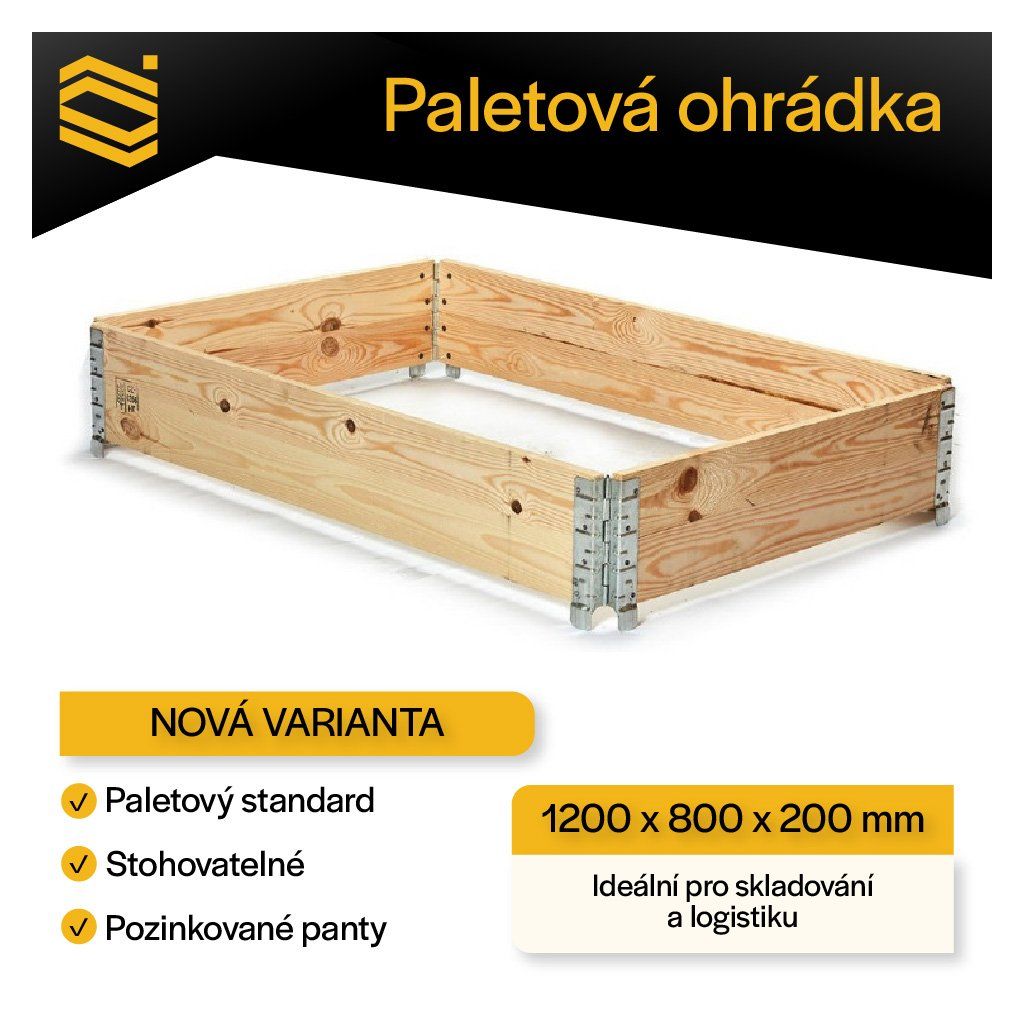 Nová dřevěná paletová ohrádka 1200x800x200mm - masivní dřevo, pozinkované panty, stohovatelná