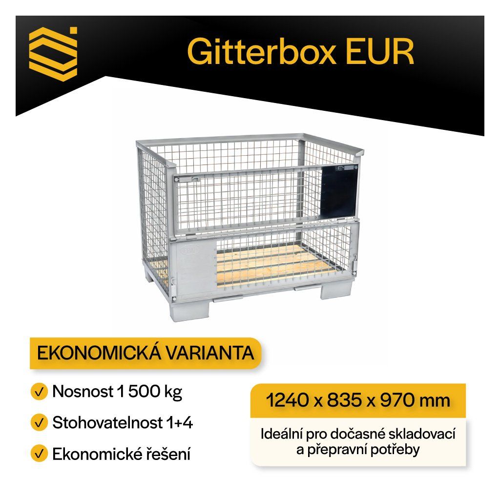 Nabízíme službu půjčení gitterboxu, ideální pro firmy, které potřebují dočasné skladovací nebo přepravní řešení. Naše gitterboxy jsou robustní kovové kontejnery s mřížovými stěnami, které zajišťují maximální ochranu a stabilitu nákladu. Díky standardním rozměrům jsou kompatibilní s EUR paletami a snadno se stohují, což umožňuje efektivní využití skladovacího prostoru.